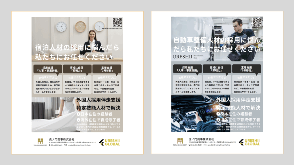その他、貴社のニーズに合わせてコーディネーターによる伴走支援サービス、採用戦略の立案、採用ルートの拡大、受入準備、事前研修、入社後の育成と定着をサポートなど、お悩みを一緒に解決してまいります。お気軽に問い合わせをお待ちしております。なお、特定技能分野についても返戻率は同様です。